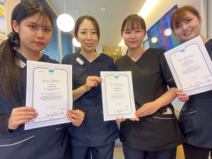 知識だけではなく、実践的な技術(Touch to Teach)を重視し、実際に患者さんができるようになるまで私達がサポート出来るよう手取り足取り歯ブラシや歯間ブラシを使用し講師の先生に1日がかりでブラッシング指導をして頂きました😌